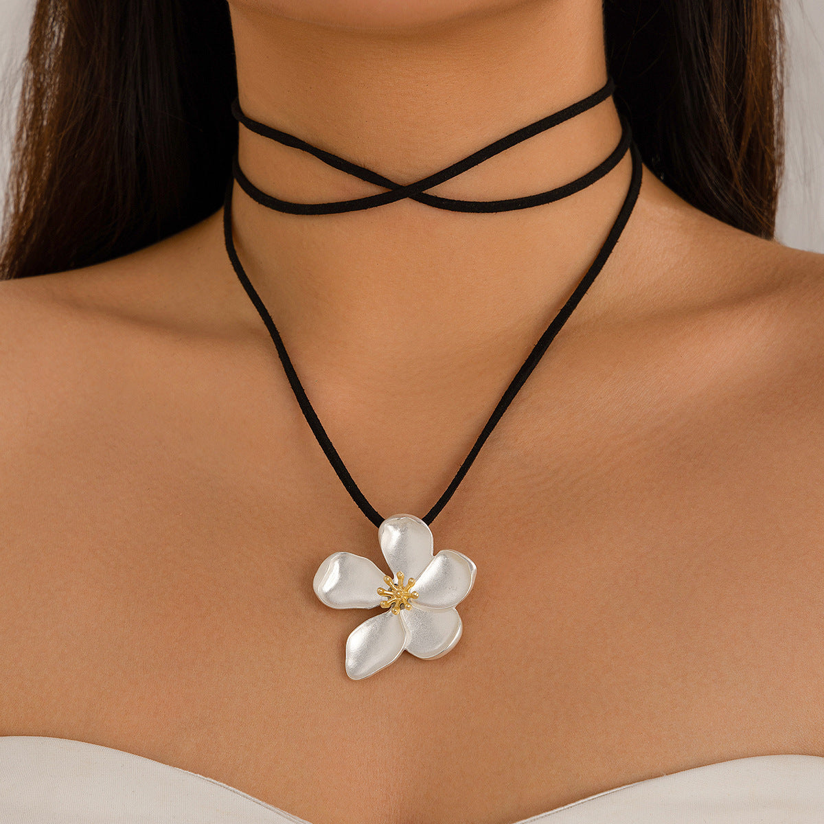 Fashion metal five petal flower pendant wrapped around neck chain, feminine necklace set